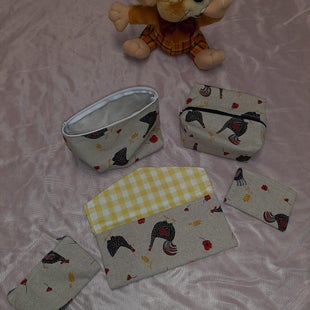 Je crée divers accessoires , tels que trousses, pochettes, tot bag, sacs à tarte, sacs à pain, etc..